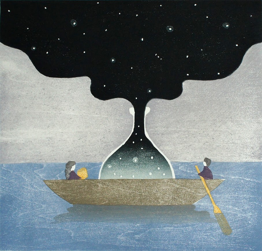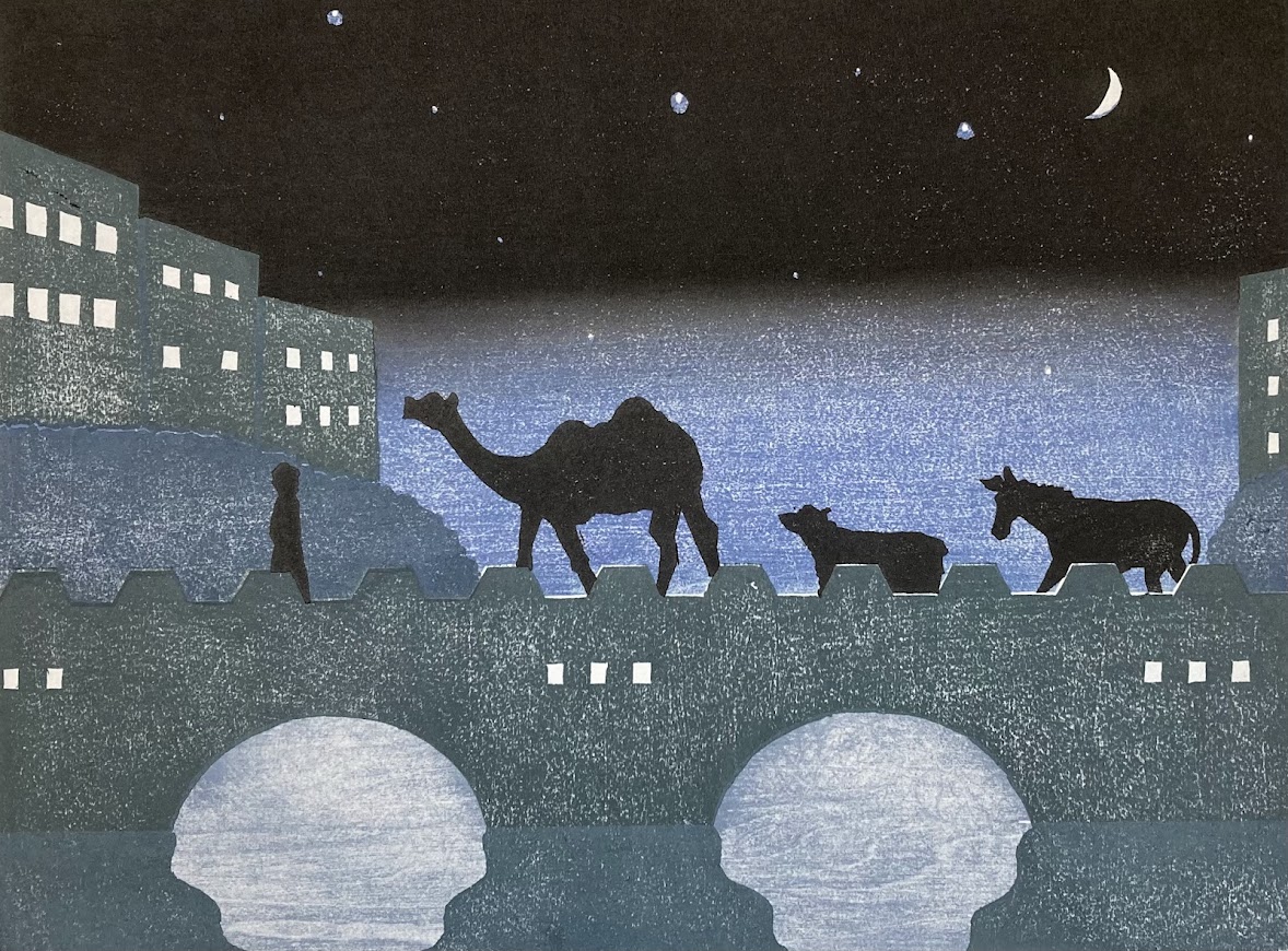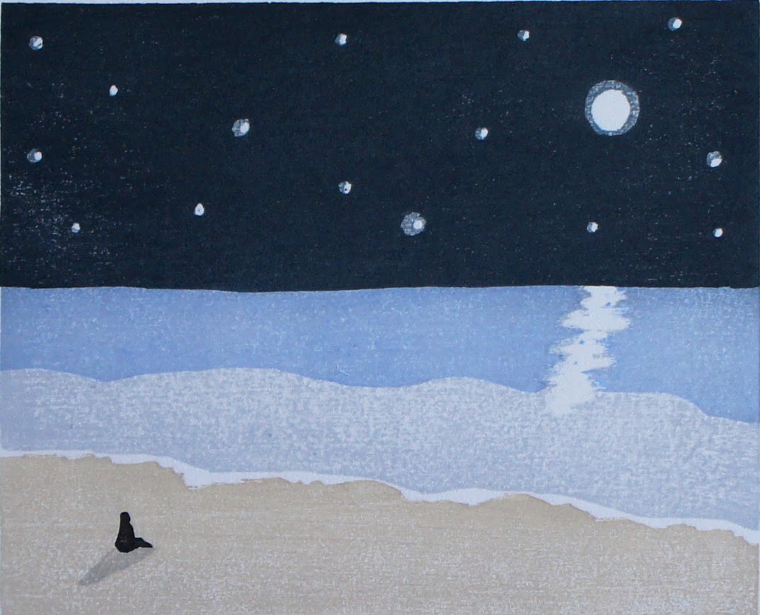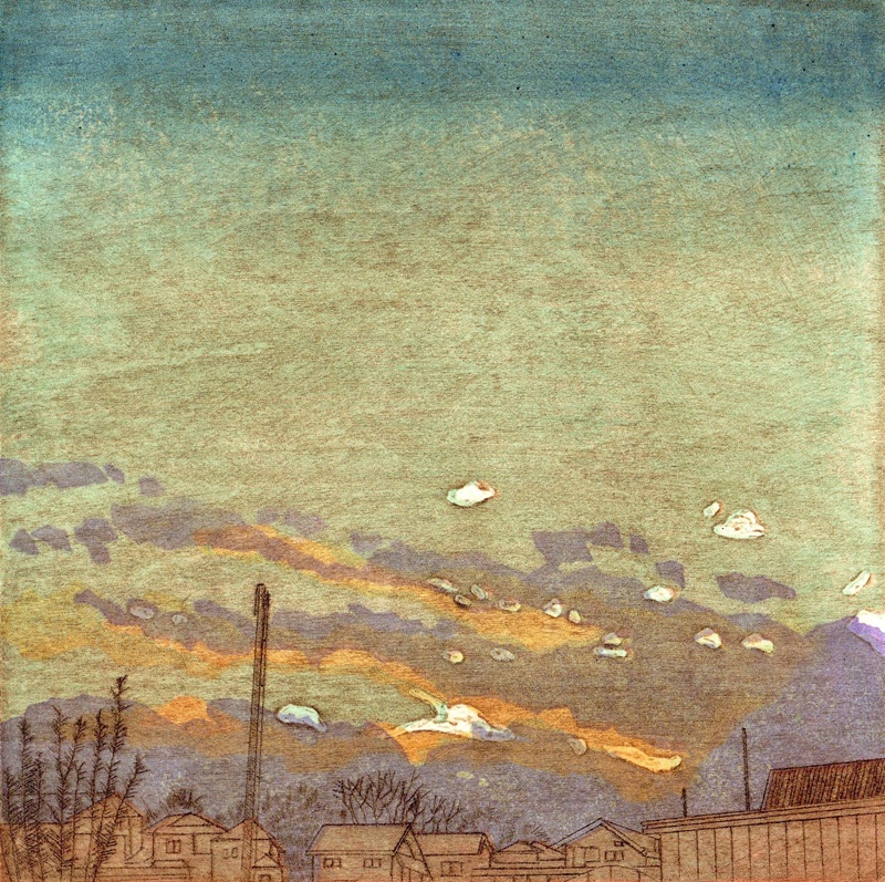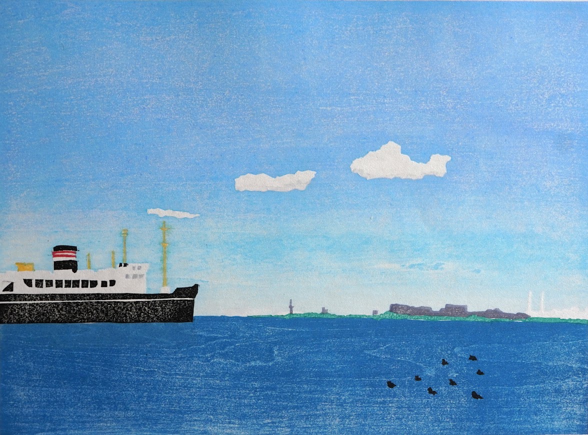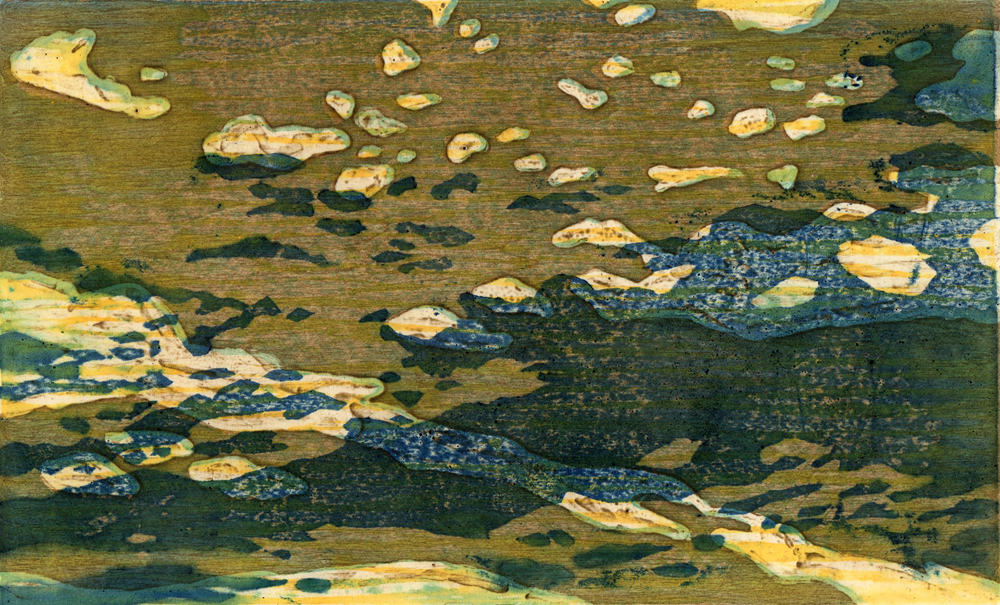 額なしパネル張り、作品のみ 作品サイズ/24.2×41㎝ 木版画凸版