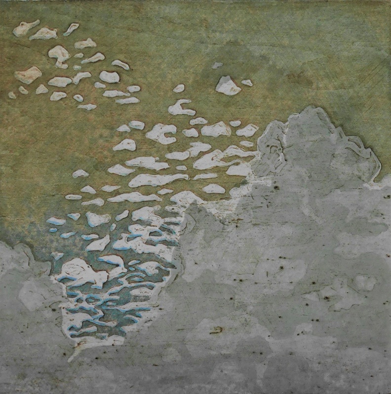 額なしパネル張り、作品のみ 作品サイズ/18×18㎝ 木版画凸版