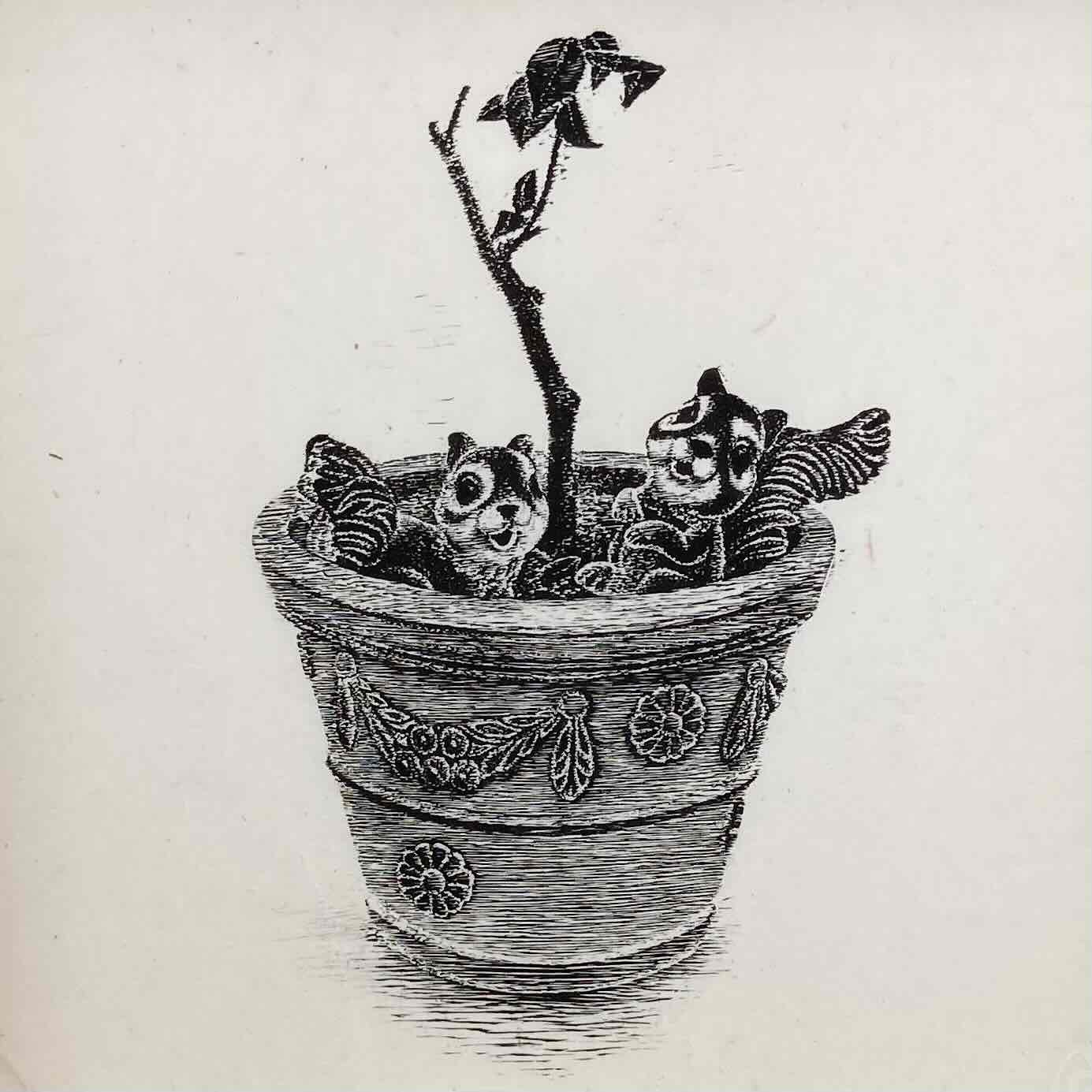 作品サイズ/10x10㎝ 額寸法/20x20cm 水性木版