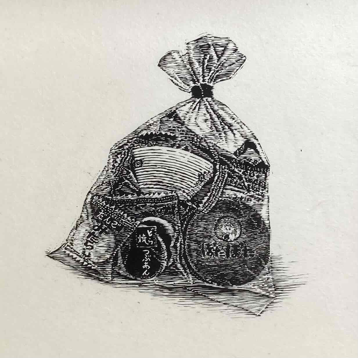作品サイズ/15×15㎝ 額寸法/15×15㎝ 木口木版