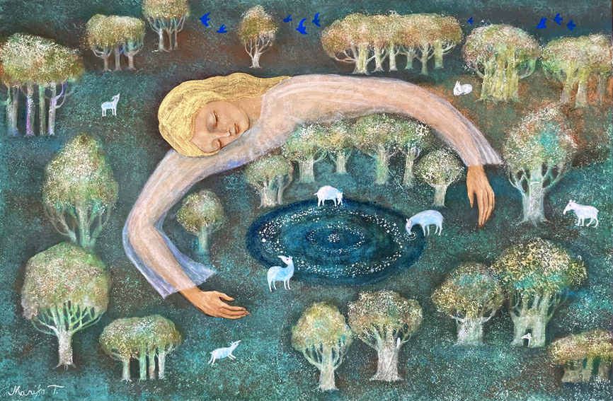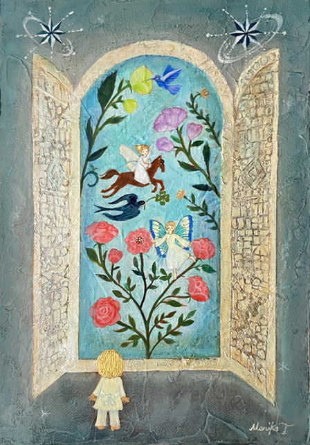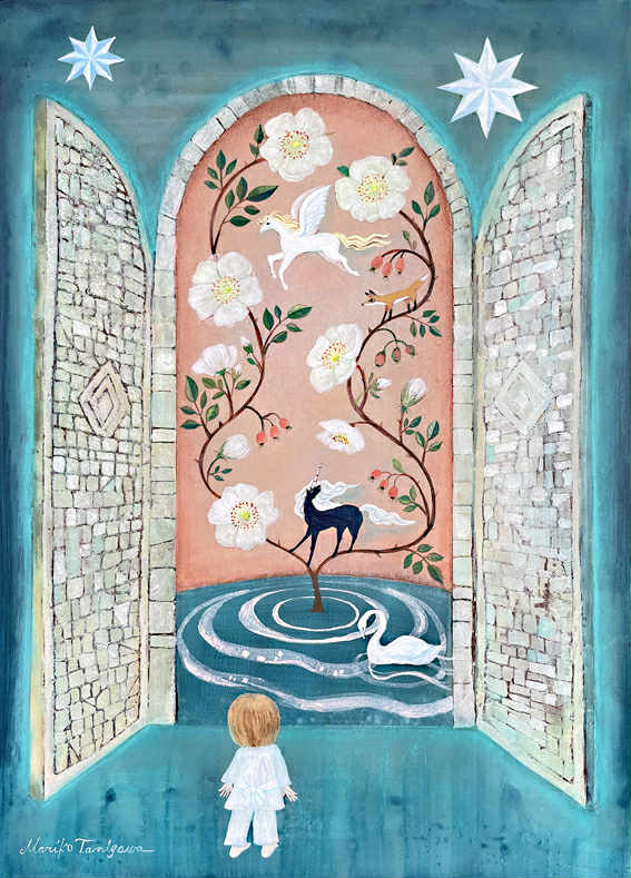 作品サイズ /116×181mm 額外寸法 /220×272mm/タントセレクト紙・色鉛筆・銀粉・胡粉ジェッソ