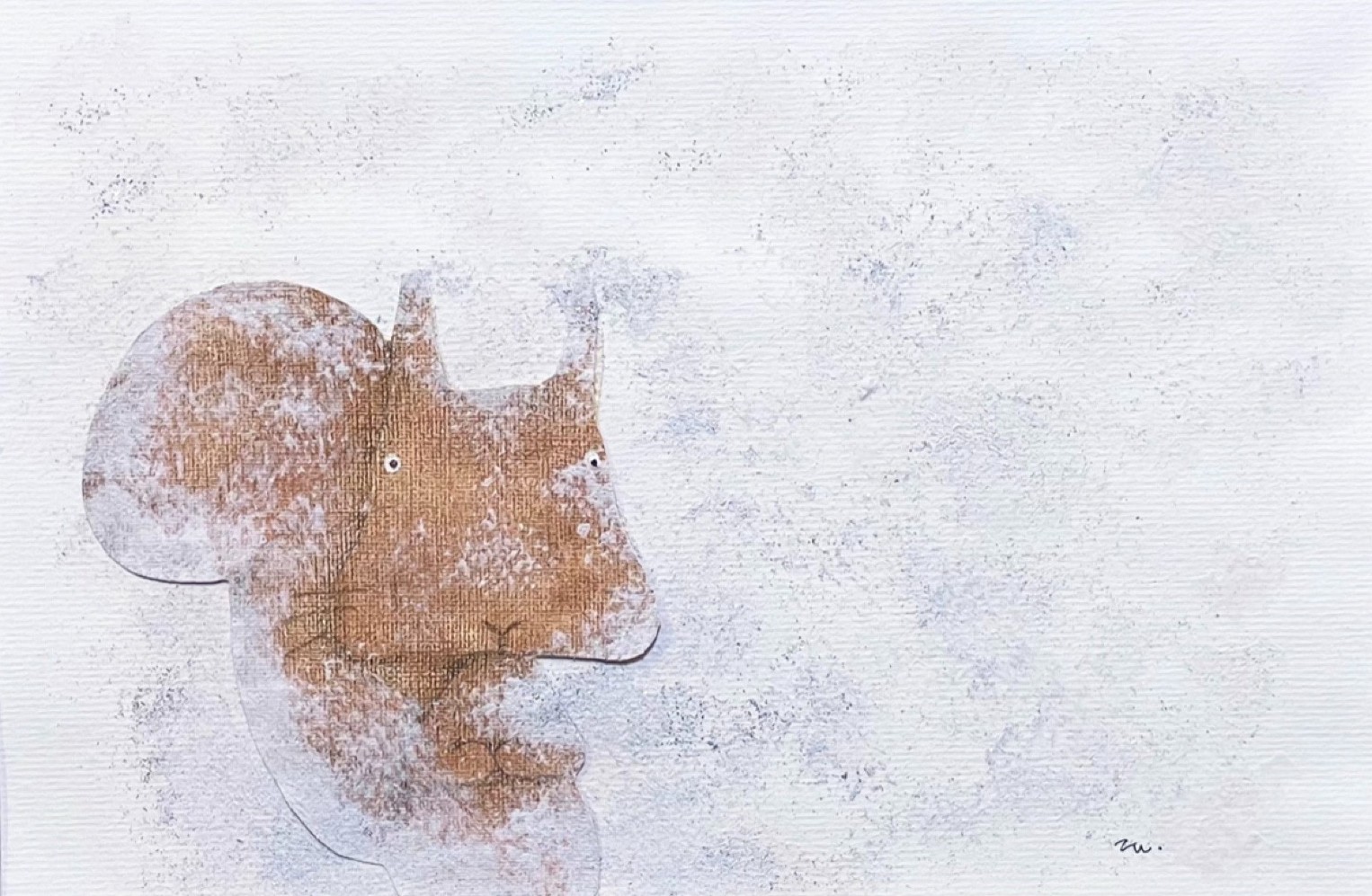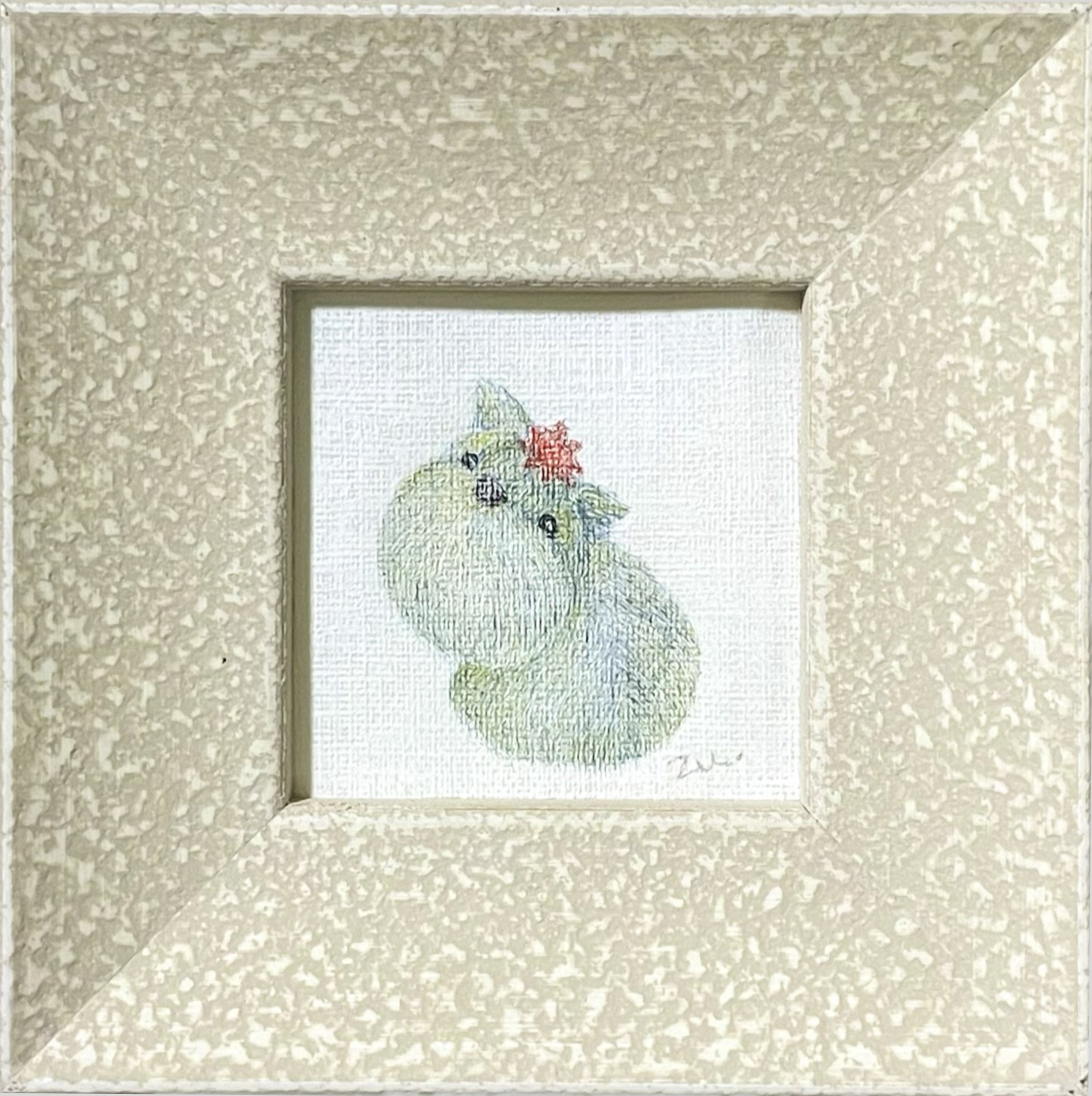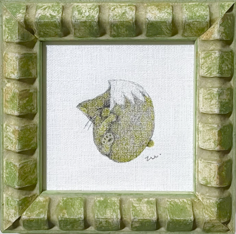 作品サイズ/ 42×42mm 額外寸法/ 88×88mm/タントセレクト紙・0.03mmペン線画・色鉛筆