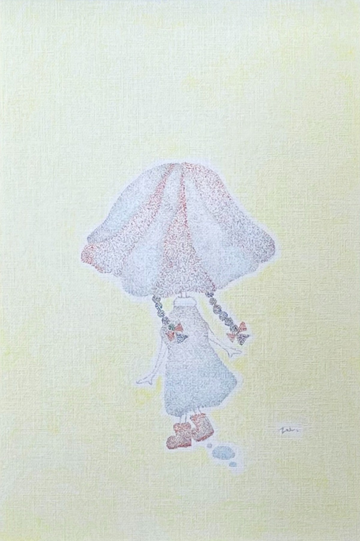 作品サイズ /148×100mm 額外寸法/ 272×220mm/グラシン紙・画用紙・0.03mmペン点描・色鉛筆
