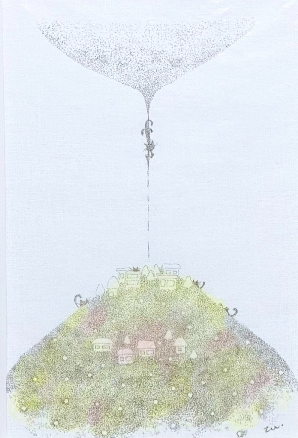 作品サイズ /116×181mm 額外寸法 /220×272mm/タントセレクト紙・0.03mmペン点描・色鉛筆