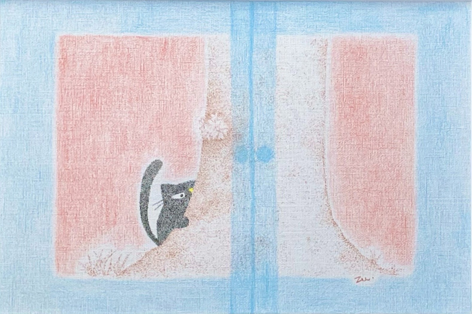 作品サイズ /36×23mm 額外寸法/ 67×52㎜/タントセレクト紙・0.03mmペン線画・色鉛筆