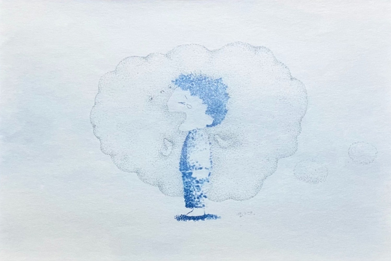 作品サイズ/ 116×181mm 額外寸法/ 220×272mm/新鳥の子紙・サイアノタイプ(青写真)・0.03mmペン点描