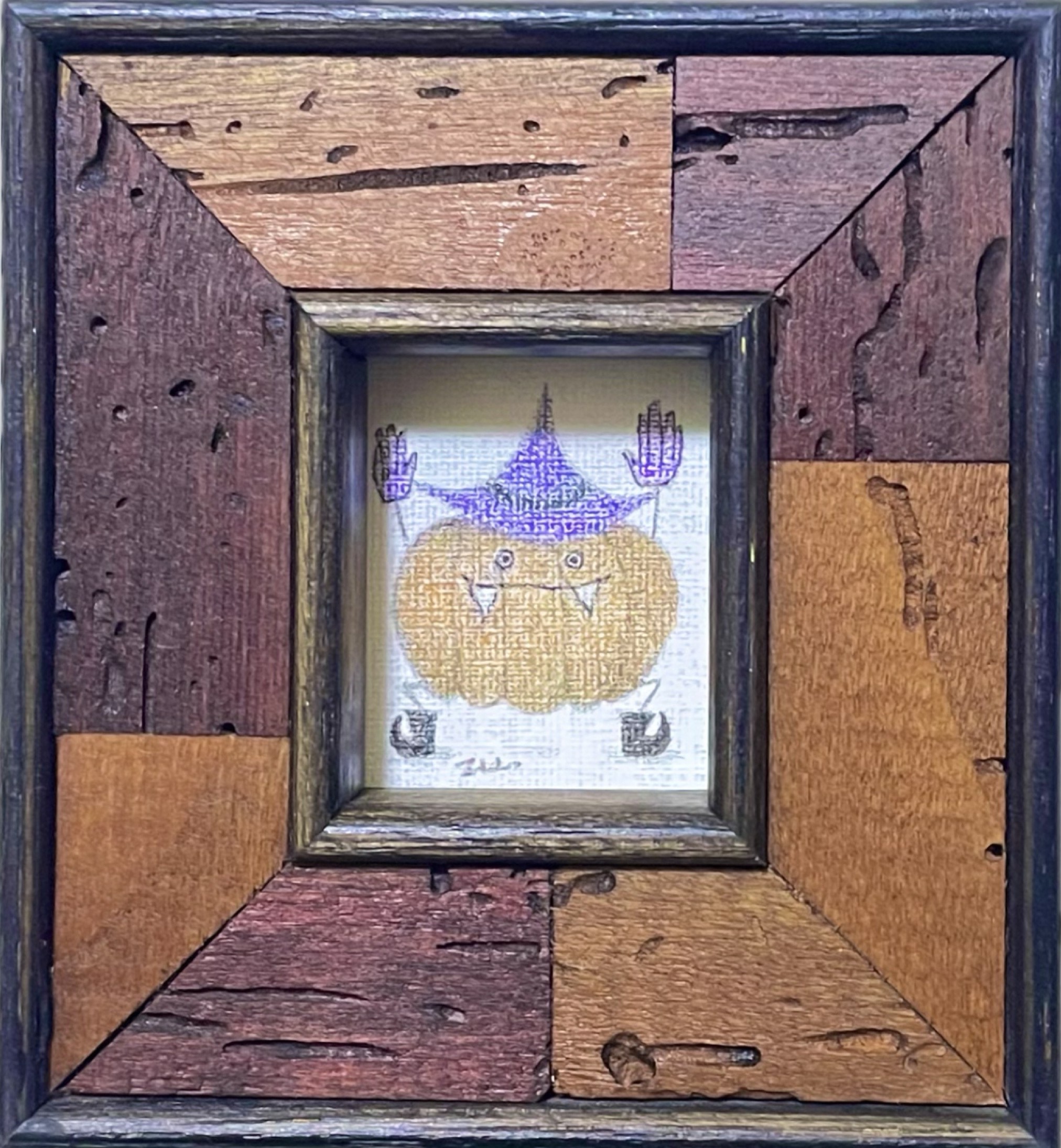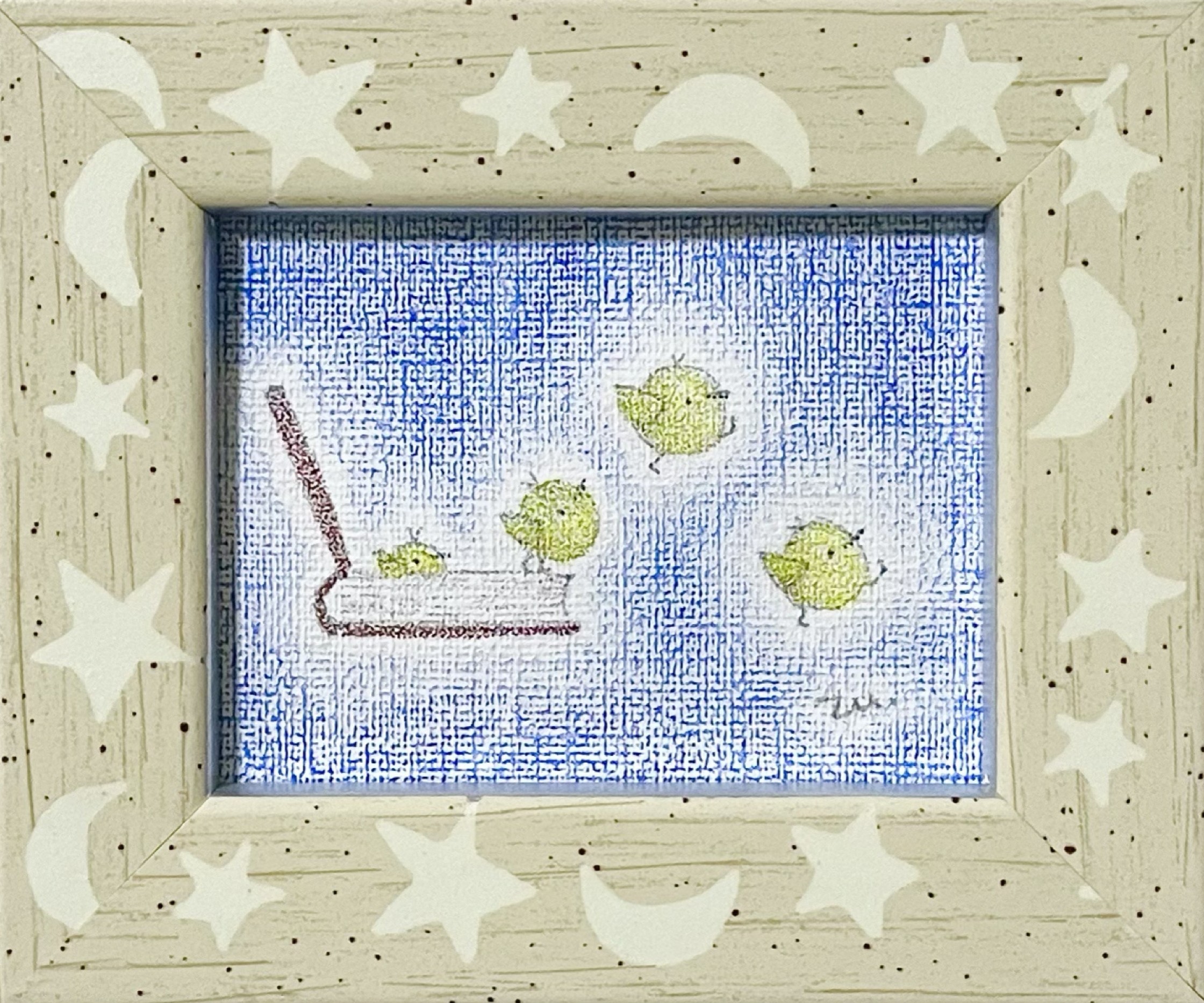作品サイズ /44×33mm 額外寸法/ 78×67mm/タントセレクト紙・0.03mmペン線画・色鉛筆