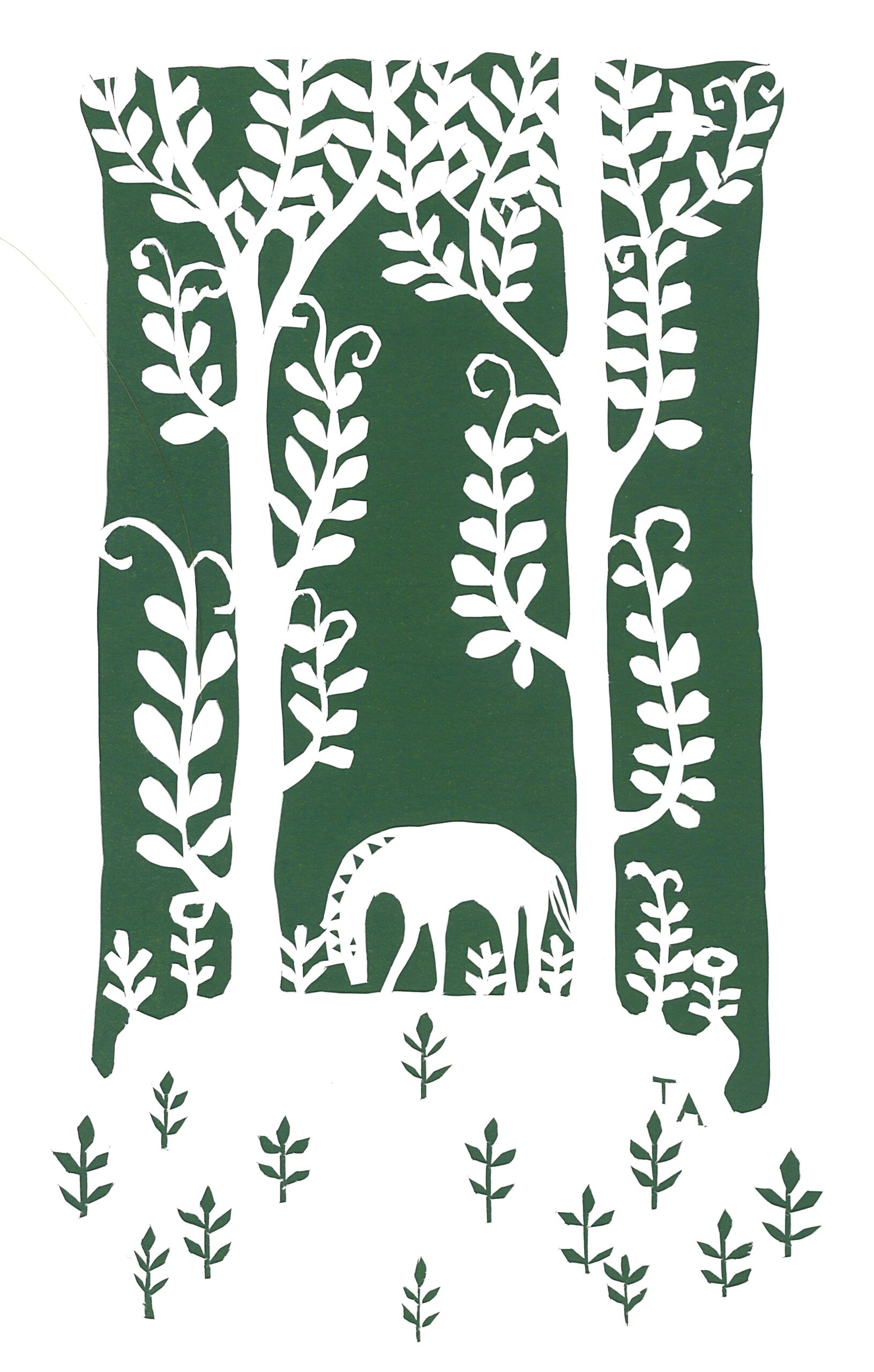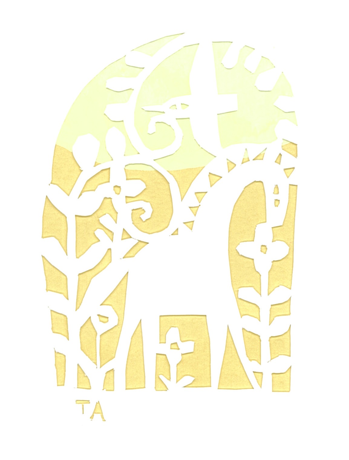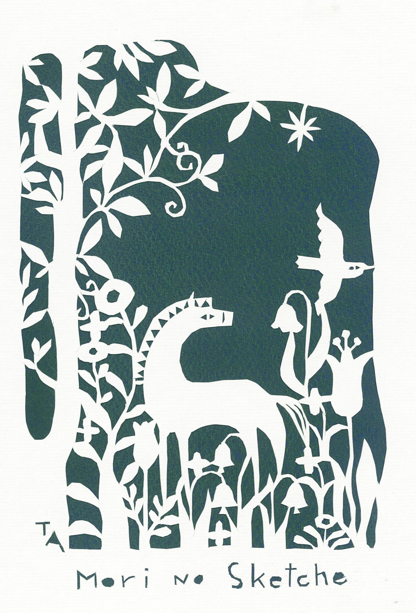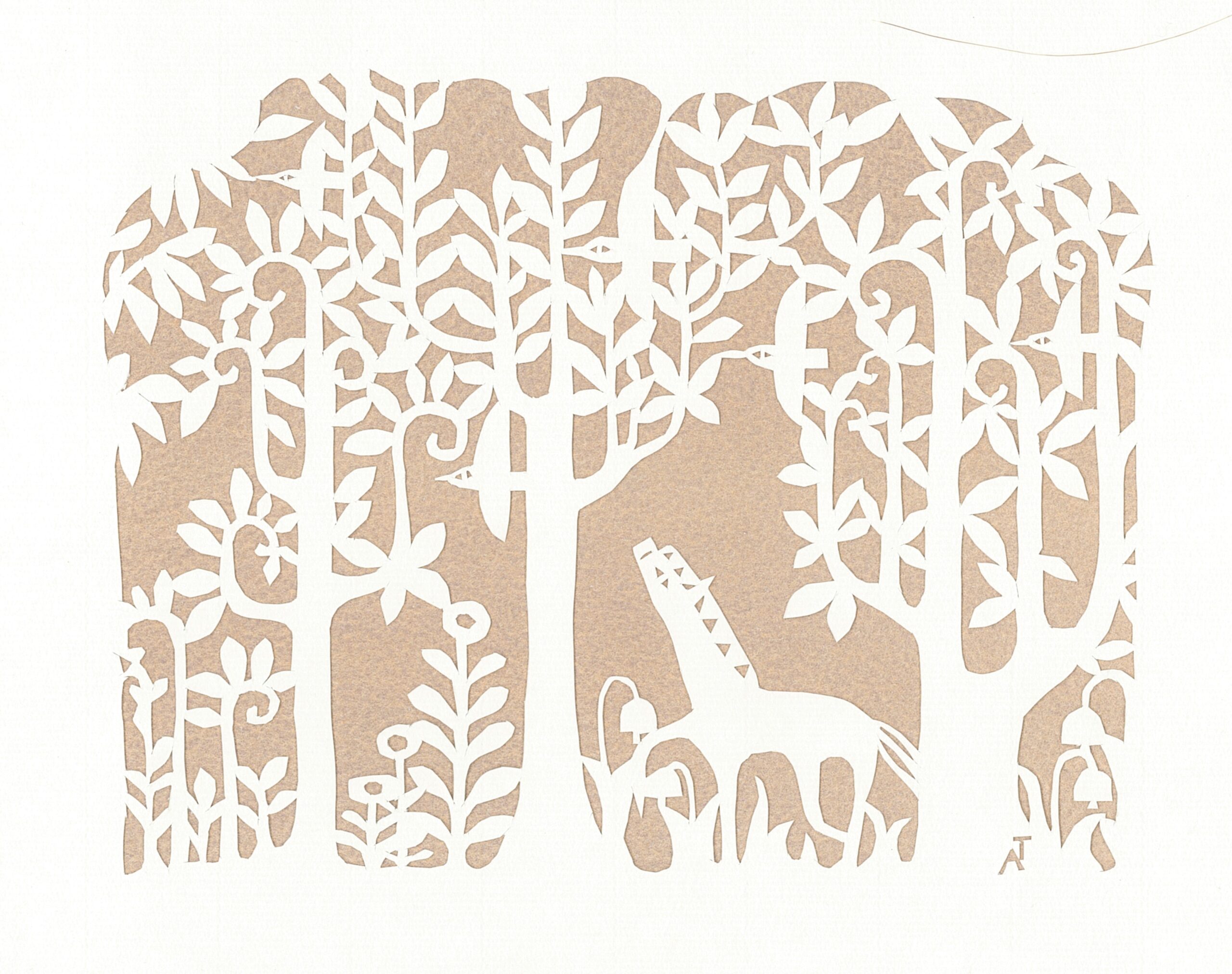 作品サイズ 18×22㎝ 切り絵とガッシュ