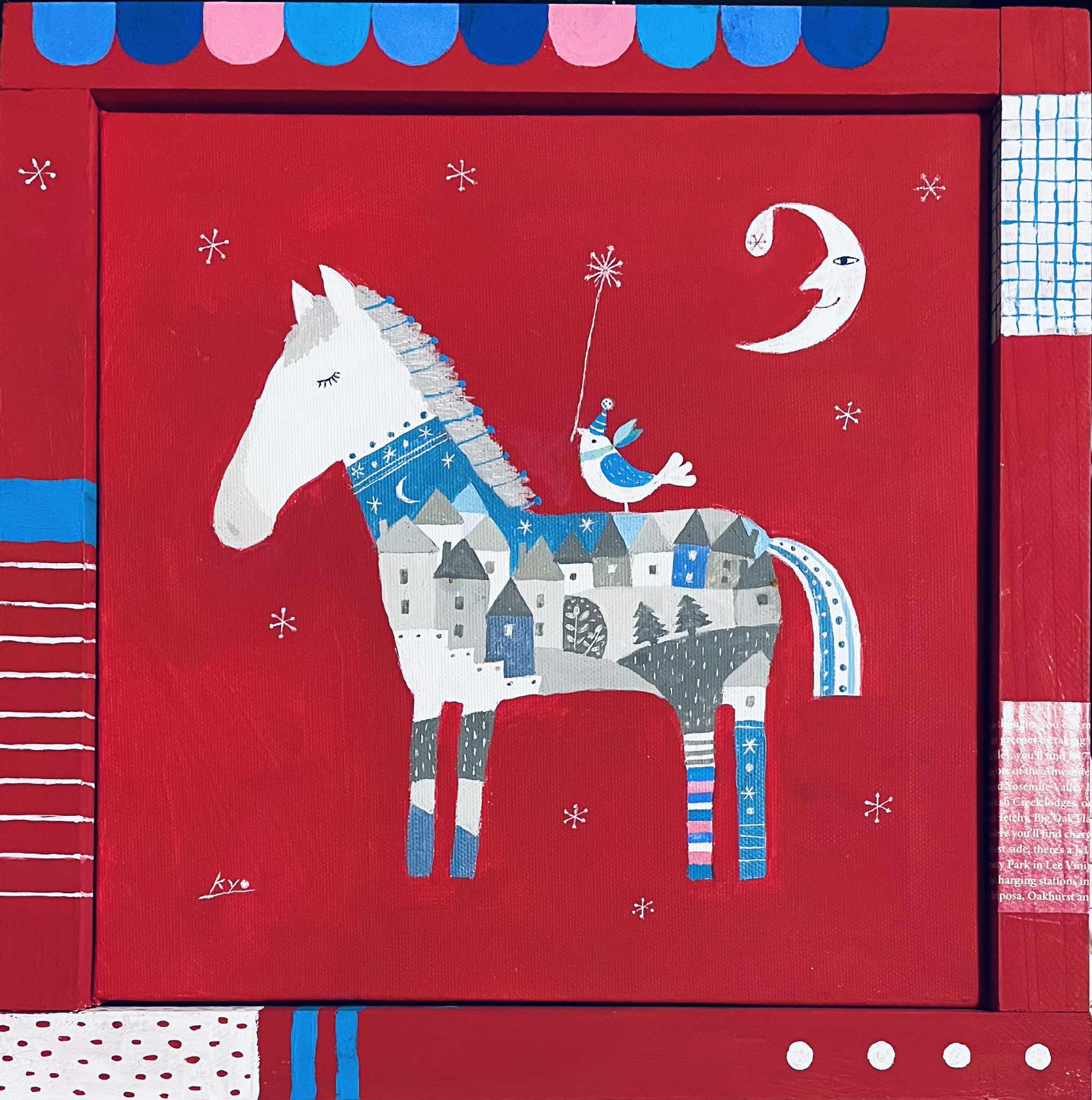 作品サイズ30×23.5㎝ 古紙にアクリル、鉛筆、色鉛筆、クレヨン