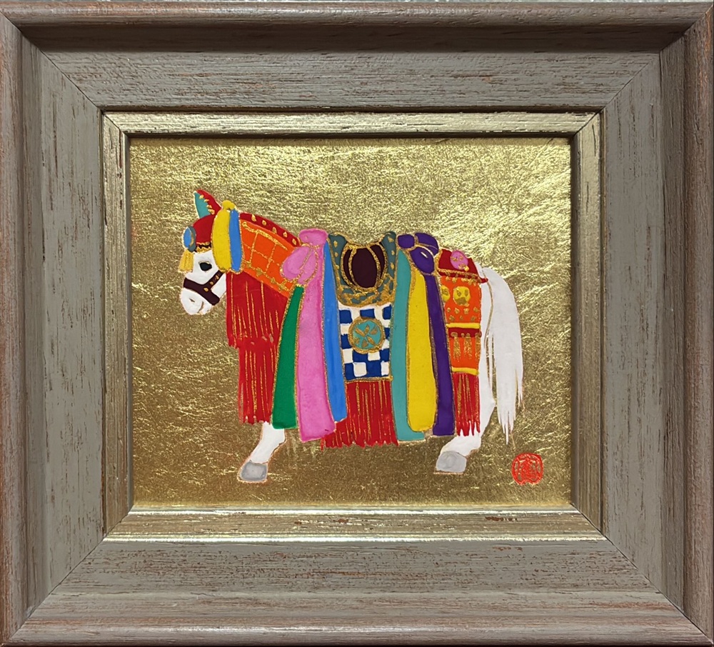作品サイズ8.6×10.1㎝ 日本画(麻紙・金箔・岩絵の具)