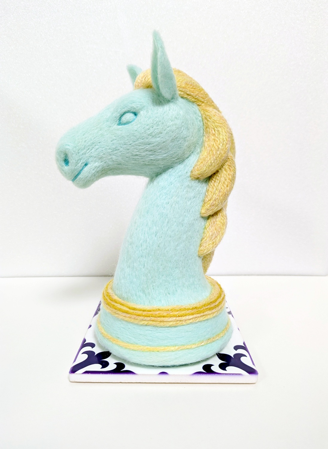 作品サイズ 15×6.5×13.5cm/ 羊毛・毛糸・プラ鈴 タイル付き
